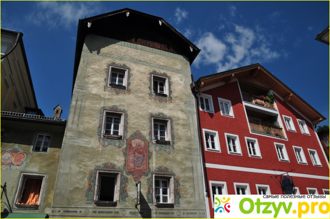 Здесь нет фахверковых зданий, а многие дома расписаны фресками. Разумеется, мы не смогли пропустить паломническую церковь Св. Вольфганга.