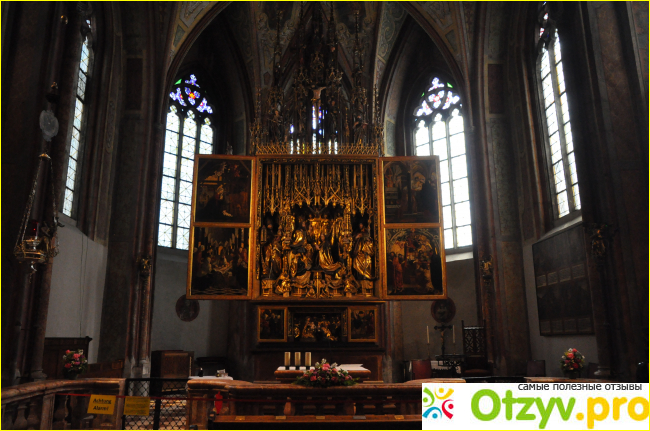Поражают могучий крылатый алтарь Михаэля Пахера, великолепный барочный алтарь Томаса Шванталера с мощами святого Вольфганга.