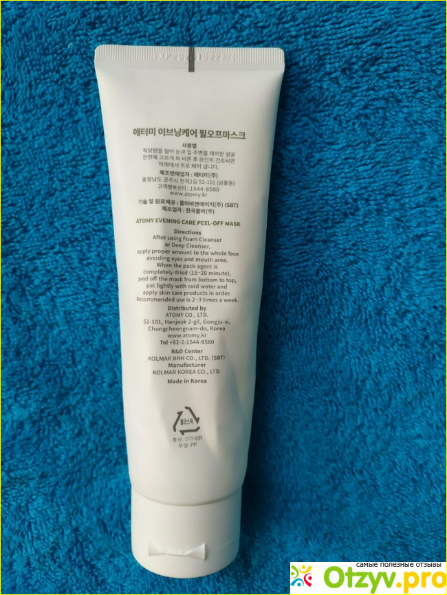 Состав маски можно увидеть на официальном сайте Atomy, но на самом тюбике его нет. Объем тюбика составляет 120 мл.