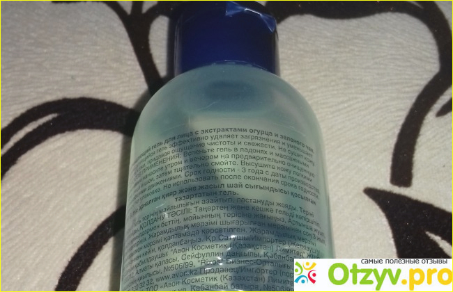 На флаконе нарисованы огурцы, но больше конечно всяких надписей, данная серии скуповата на дизайн, в этой серии обычно все имеет достаточно простое внешнее оформление. Как и у других средств для умывания из серии Avon Care, у этого тоже имеется защелкивающаяся синяя крышечка, что тоже для меня вполне привычно.