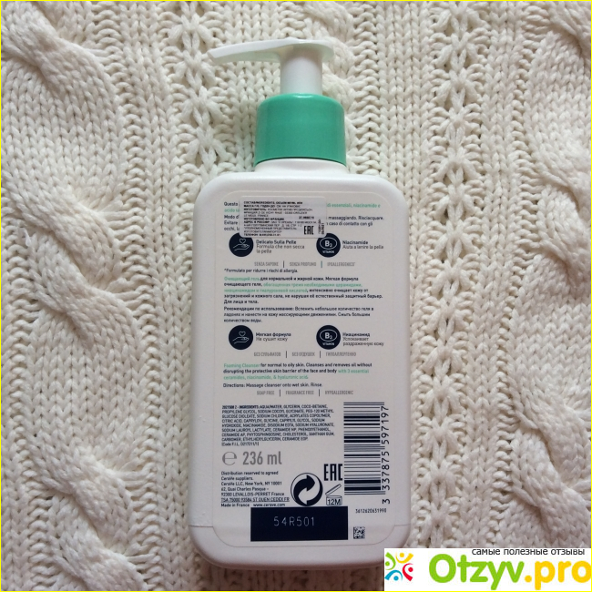 Речь идёт об очищающем геле для умывания, предназначенного для нормальной и жирной кожи от марки CeraVe. Эта марка является дочерней известного мирового концерна Loreal, но, что удивительно, она имеет состав не относят относящийся к масс маркету.