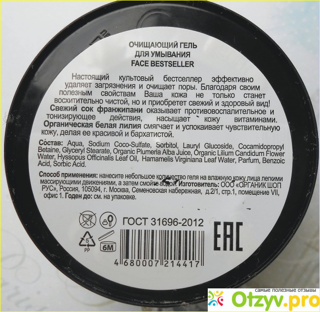 Кстати, расходуется гель очень экономно, прошло почти полгода, как я пользуюсь одной банкой, а ее содержимое еще не закончилось и свойства не пропали. Лично для меня очень важно, что в этом геле нет ни SLS (sodium lauryl sulfate), ни парабенов, и то и другое часто вызывает аллергию. В нем содержатся только пищевые натуральные консерванты, которые и позволяют долго сохранять гелю его годность.