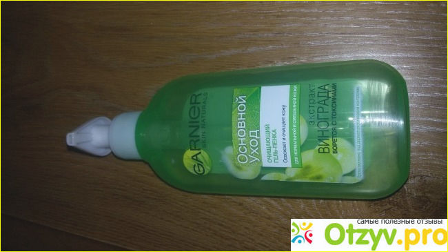 Сегодня я хочу рассказать про Очищающий гель-пенка Garnier "Основной уход" с экстрактом винограда. Купила это средство в магазине Санги Стиль, цена 118 рублей, объем 200 мл. Гель-пенка продается в пластиковом флаконе с дозатором, позволяющим выдавить столько средства, сколько нужно, и не надо ничего крутить мокрыми руками.