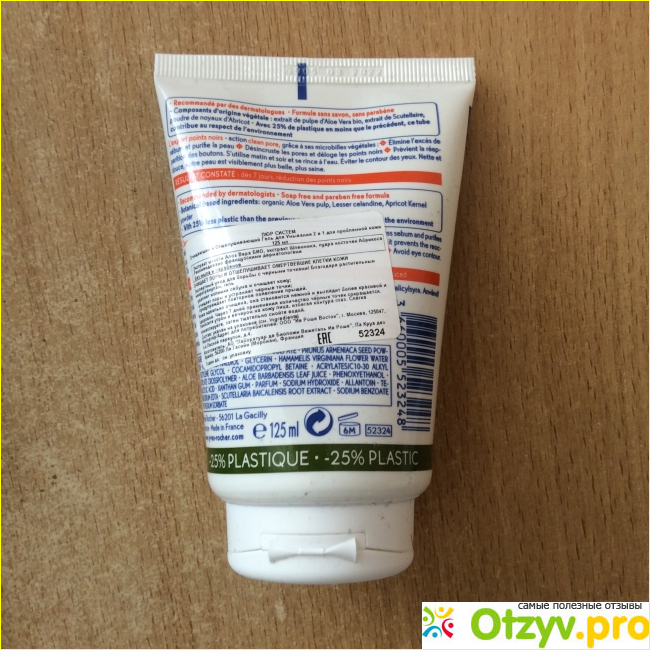На тубе производитель оставил информацию, которая может понадобиться потребителю. Данный производитель тверждает, что в его составе очень много натуральных компонентов. Состав я не разбирала подробно, но хочу сказать, что он не вызывал раздражение или аллергическую реакцию. Также есть уточнение о применении, направленности данного средства, а также контактная информация о производителе.