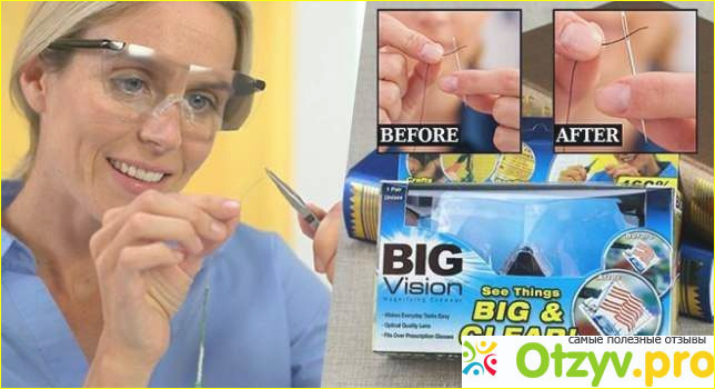 Знаю, что чаще в таких случая используются лупа, та, которая на ручке. Но ее необходимо удерживать в руках, а очки Big Vision 160% похожи на обыкновенные очки, одеваются на два уха и руки у вас свободны!