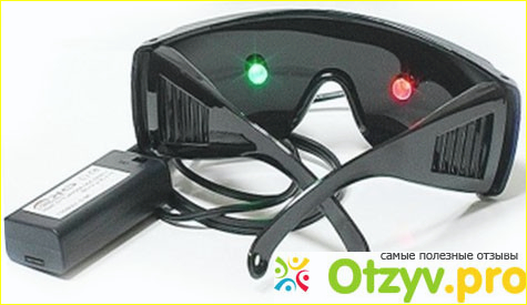 Очки Панкова – прибор, в оправу которого вмонтированы светодиодные излучатели, управление работой которых происходит с помощью встроенных микропроцессорных контролеров, располагающихся непосредственно в излучателях. Светодиодные излучатели совмещены с батарейными блоками.