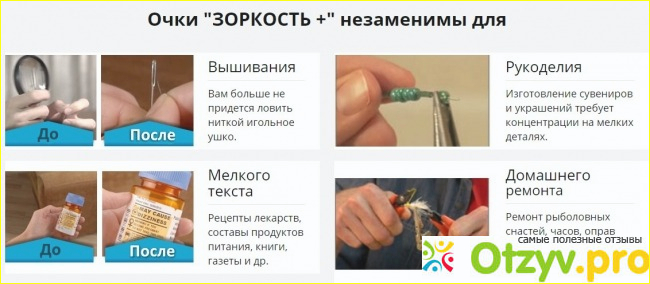 Лично для меня "очки зоркость" послужили просто палочкой-выручалочкой. Зрение село хоть ненамного, но дискомфорт ощущается, если мне нужно выполнить какую-то мелкую работу.