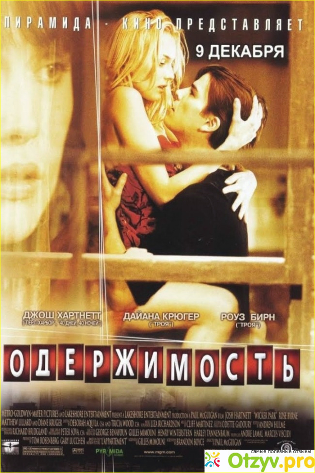 Фильм "Одержимость" был снят в 2004 году режиссером Полом Макгиганом, в главный ролях снялись Джош Хартнетт и Диана Крюгер. Оригинальное название - "Уикер-парк". Так называется район в Чикаго, где происходит действие, где встречаются герои, Уикер-парк - район, известный танцевальными площадками, магазинами, бутиками.