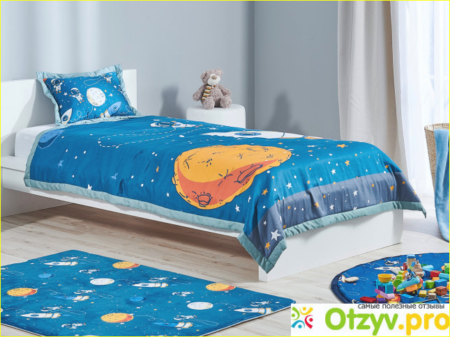 Такое красивое изделие оценит каждый ребенок, особенно, если он любит космос и различные приключения. В уходе одеяло очень простое и не будет доставлять хлопот.