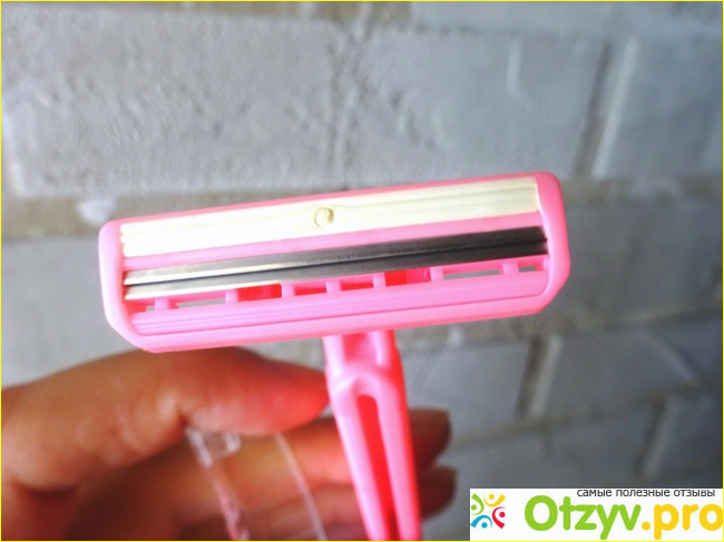 Через прозрачное окошечко можно было увидеть сами станки, они изготовлены из пластмассы яркого – розового цвета. Станок имеет два лезвия, предназначенных для быстрого, безопасного и комфортного бритья.
