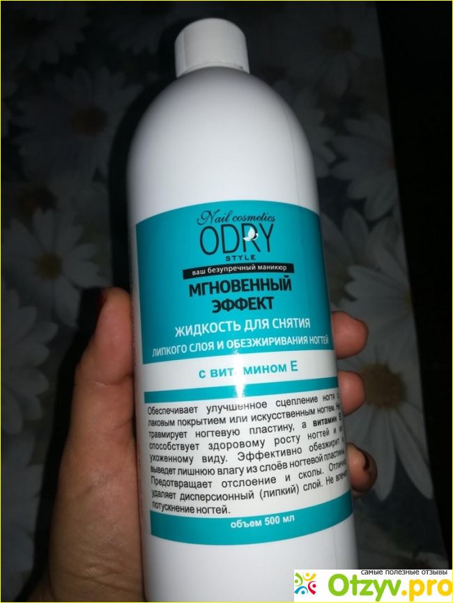 Жидкость Одри Стайл объемом в 500 мл до кризиса по акции брала за 300 рублей. Сейчас этот же продукт стоит в два раза дороже. Предназначено для очистки и обезжиривания ногтевой пластины, обеспечивает долговременную сцепку между натуральногой ногтевой пластиной и покрытием. Также используется для снятия дисперсионного слоя после сушки в лампе. Для того, чтобы процедура была эффективной, стоит пользоваться безворсовыми салфетками.