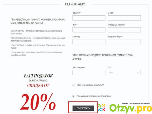 Прежде чем начать заказывать продукцию на сайте нужно пройти простую регистрацию. Для этого нужно ввести небольшие личные данные. Паспортные данные сайт не запрашивает. Однако, когда вы станете зарегистрированным пользователем, то автоматически станете участником сети. И будете подписаны на кого-то. Это обязательные условия и их обойти ни как не получится. Поэтому человек, на которого вы подписались будет получать с ваших заказов хоть и не большую, но все же прибыль.