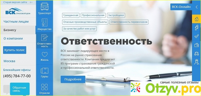 У компании ВСК, такой крупной и солидной имеется просто отличный интернет сайт и он носит официальный вид, главная реклама этого сайта в том, что почти у каждого четвертого человека нашей страны имеется личный автомобиль, либо в каждой семье. Следовательно машину нужно страховать по Каско, Осаго, чтобы уберечь себя от страхового случия, который может возникнуть из неоткуда. А автовладельцы доверяют этой компании за хорошую и быструю скорость работы, отдачу которая стоит денег, если с Вами сидит профессионал своего дела. Сотрудников компания обучает приличным навыкам и личным опытом работы, который длится несколько десятилетий.