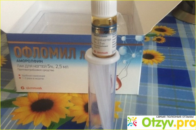 Сам же лак продается в небольшом стеклянном флаконе объем которого составляет 2,5 мл. Хоть на первый взгляд кажется, что его не так уж и много. Но в тоже время вам на один раз использования и самого лака потребуется не так уж и много. По этому если вы не сильно запустили свое заболевание, но одной такой упаковки вам в принципе должно хватить на целый курс лечения. Так как этого лака хватает примерно на 3-4 месяца. Если же заболевание довольно сильно обострилось, то тогда вам понадобится две упаковки лака Офломил.