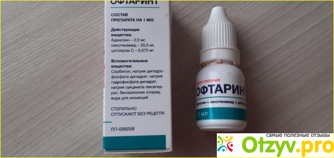 Данный препарат в своем составе содержит три активных вещества: аденозин, никотинамид и цитохром С. Выпускается препарат в форме глазных капель, раствор прозрачный, но красного оттенка, дозировка по 1 мл.