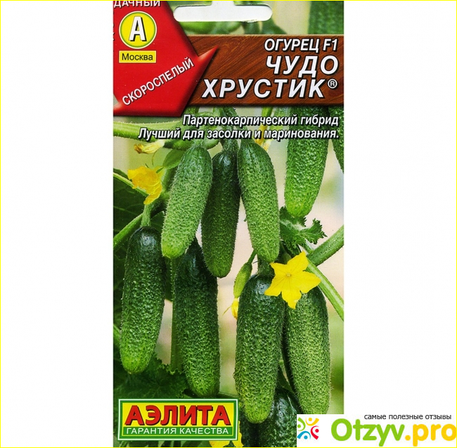 Это огурец под веселым названием "Чудо Хрустик", уже несколько фирм производят семена этого сорта, но мы покупаем именно продукцию фирмы Аэлита, т.