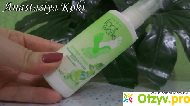 Консистенция легкой ароматизированной водички. При распылении на кожу правда чувствуется приятный охлаждающий эффект, но он очень быстро проходит поэтому сложно сказать что это средство борется с усталостью в ногах, но многие замечают все таки этот приятный момент. Аромат при распылении довольно активно чувствуется, но исчезает быстро, точнее он как будто впечатывается в кожу. Он довольно приятный мятно-травяной, не химический. После распыления он довольно быстро пропадает и нет мокрого ощущения на ногах. Не создается на коже никаких абсолютно неприятных ощущений, ни липкости, ни пленки, ничего такого. Я использую его обычно утром и вечером после душа и перед нанесение крема для ног. Очень здорово пользоваться им конечно же летом. Очень здорово он спасает ножки в жаркое время и создает приятный комфорт. Даже несколько раз брала его с собой на прогулку и распыляла пока сидела где-то на лавочке. Упаковка правда удобная чтобы брать ее с собой в поездки, что я очень часто делаю. Очень приятное ощущение на коже он создает. А если хранить этот спрей в холодильнике, то вообще невероятно приятно им пользоваться. Для распрыскивания обуви я его не использую, только для кожи. Выхожу из душа, распыляю на ножки и бегу дальше.