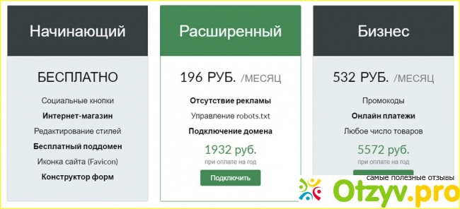 Что на счет пакетов услуг, благодаря которому раскрываются все просторы этого сервиса, то за них необходимо платить ежемесячно разную сумму. "Расширенный" позволяет отключать рекламу на сайте при посещении, а так же дополнительные инструменты, первый уровень домена.