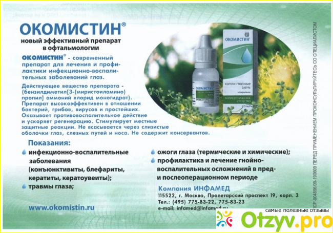 Надо знать, что глазные капли "Окомистин" не совместимы с контактными линзами, поэтому на период приема капель необходимо отказаться от ношения контактных линз.