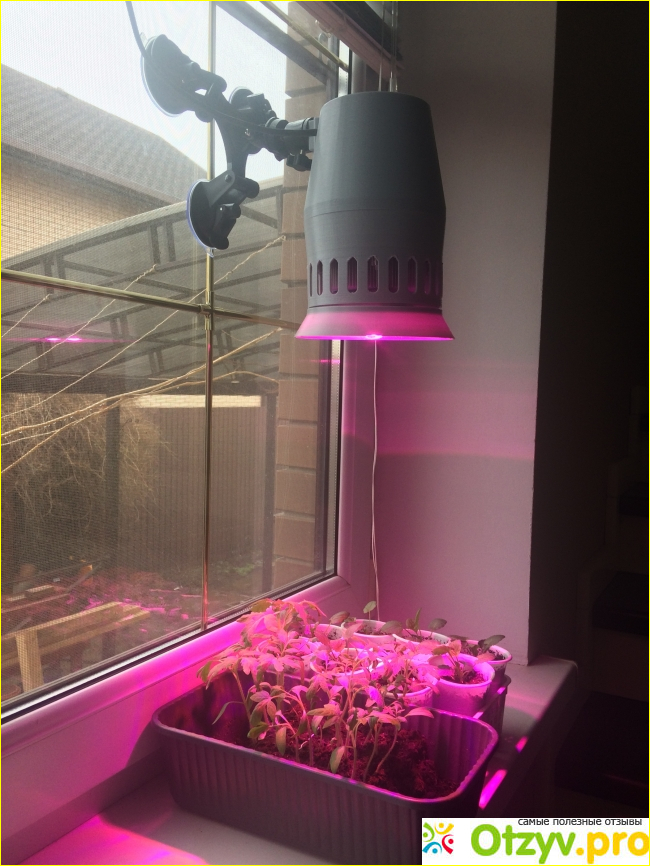 Сейчас лампа прикреплена над подоконником прямо на стекло. Но когда стает теплее, я планирую перевесить ее на балкон для досветки комнатных цветов и растений.