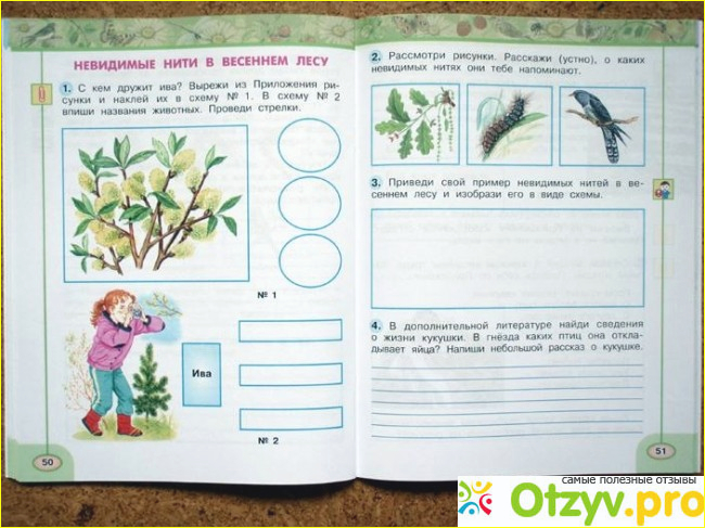 е помощью можно фиксировать пройденный материал и при надобности открыв тетрадь тут же вспомнить то, о чем шла речь в прошлых параграфах. Здесь рассматриваются самые разные темы - по ним же созданы очень удачные задания - например - тема звучит так - В ботаническом саду - и тут же с помощью наблюдений и другого опыта ребенок отвечает, анализирует и осмысливает данный вопрос. Судя по племяннице, тетрадь очень удачная. Конечно, не все она смогла сделать самостоятельно, но большую часть делала самостоятельно, так что тетрадь действительно разработано согласно материала программы, потому рекомендую как родителям, так и учителям. Кстати, для учителей - подобные тетради - это неимоверное облегчение - не нужно думать о заданиях - за них их уже придумали!