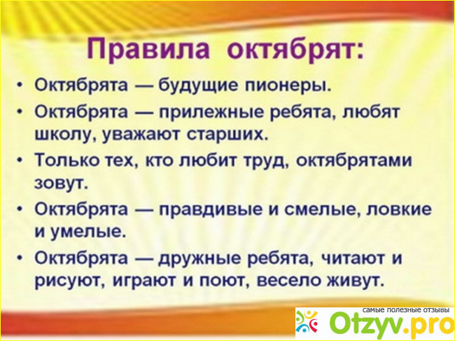 Правила октябрят были действительно очень яркими, запоминающимися: