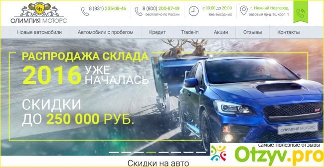 Когда все же мы в этот же день решили купить подошедший автомобиль, то отношение поменялось к нам. Узнав выгодные условия кредита, наверное, многие бы согласились на сделку. К тому же мы еще и под какую-то акцию попали. Они, как я потом узнала, проходят в Олимпии Моторс часто. Думаю, таким образом завлекаются клиенты. Например, дешевые машины 2016 года выпуска. Уж не знаю в связи с чем упала цена. В общем, в магазине действительно есть на что взглянуть.