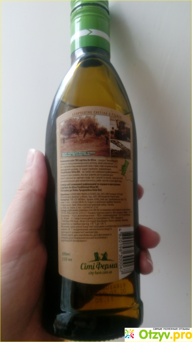 С обеих сторон на бутылочке есть наклейки, на которых указана информация о происхождении масла, его производителе и срок годности.