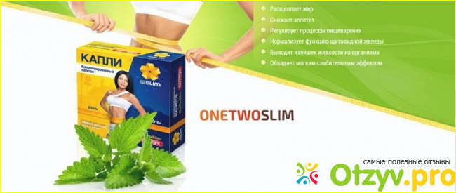 Onetwoslim - сильнейшее концентрированное средство, капли для похудения и моделирования фигуры. Средство разработано для экспресс-похудения, так как действует комплексно на организм, расщепляя и выводя жировые отложения и контролируя аппетит.