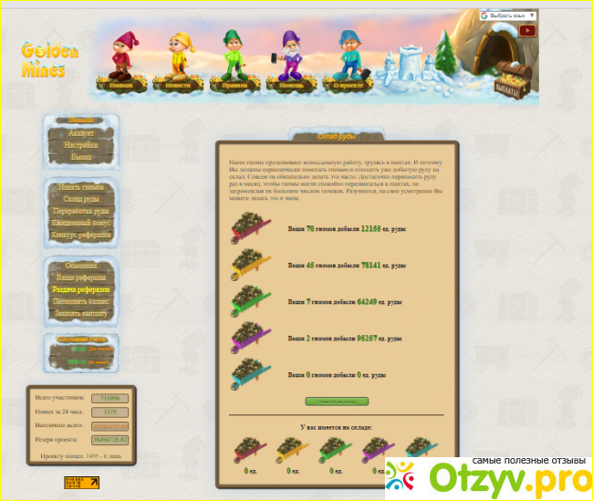 Здравствуйте, уважаемые читатели сайта Отзывы про! Сегодня расскажу, как обманывают честной народ в интернете. Думаю, каждый из нас хотел бы получать, пассивный доход, пусть даже и не большой но постоянный. Вот и я повелась на так широко рекламируемую игру golden mines.