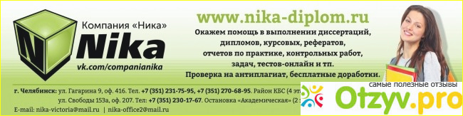 Поэтому при всем моем уважении к компании ООО "Ника" советую студентам не все заказывать работы, только то, что Вы лично не успеваете сделать в силу личного времени и возможной работы, как это было у меня в первые годы учебы. Писала шпоры и прочее.