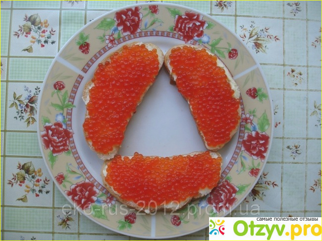 Бутерброд получился краше не придумаешь, но на вкус это полная туфта: ни вкуса, ни запаха, сами икринки долго гоняла я по челюстям, так раскусить мне и не удалось ни одной, они словно волшебные маленькие мячики ускользали от проколов зубами, так и проглотила я их не насладившись долгожданной мечтой.