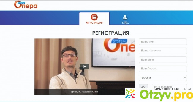 Откроем сайт www.operasystem.ru. Главная страница сайта не обременяет нас обилием информации. На ней находится рекламный видеоролик и стандартная форма регистрации. Видео вы можете посмотреть самостоятельно, перейдя по вышеуказанной ссылке. Сразу хочу заметить, что видеоролик очень длинный, поэтому наберитесь терпения. Правда, большую часть времени этого фильма авторы проекта Опера Систем Владимир Пригожин и Аркадий Гроссман рассказывают о том, как прекрасно быть богатым, финансово независимым и счастливым.