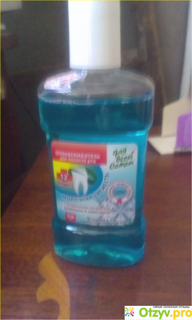Покупаю разные, на этот раз приобрела недорогой ополаскиватель для полости рта Для всей семьи " Морозная свежесть" с натуральными экстрактами ромашки и календулы.