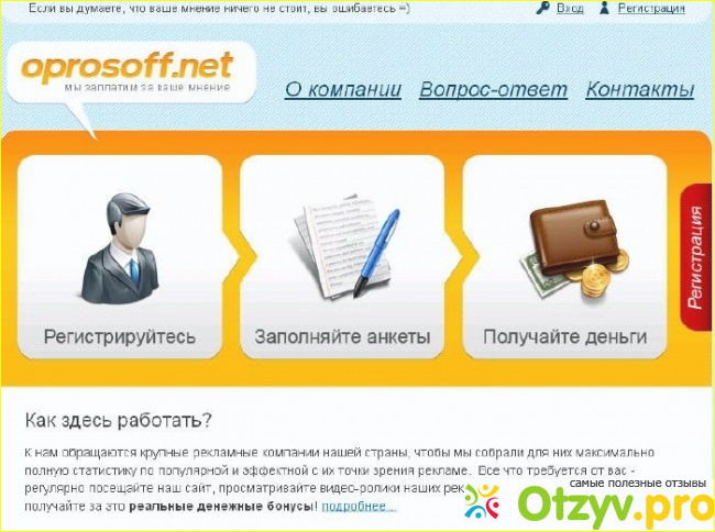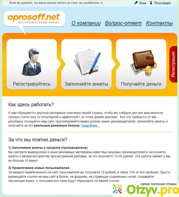 Вообще, очень обидно, что сайты не платят ведь времени уходит порой немало, потраченного времени жаль. Получается, что мы заключаем договор, соблюдаем правила, а нами просто бессовестно пользуются. Но поскольку с сайтом oprosoff.net я уже давно - не дружу, на этот раз скринов не будет. Мне кажется, что сайт сам давно прикрылся с такой репутацией. Зато появлялись клоны этого сайта, это я знаю точно. Поэтому я проанализирую отзывы других людей с других сайтов, вы убедитесь вновь, что "бесплатный сыр только в мышеловке". Поскольку сайт лохотрон, соответственно, плюсов не имеет.