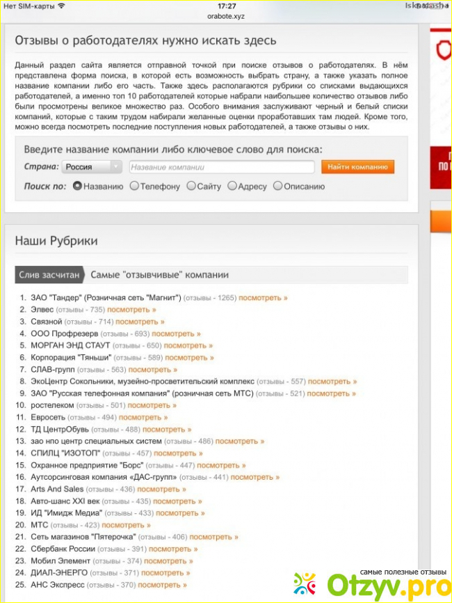 Я считаю сайт orabote.net и подобные ему очень полезными при поиске нового места работы! Только не забывайте, что на таких сайтах положительный отзыв можно в принципе встретить очень редко.