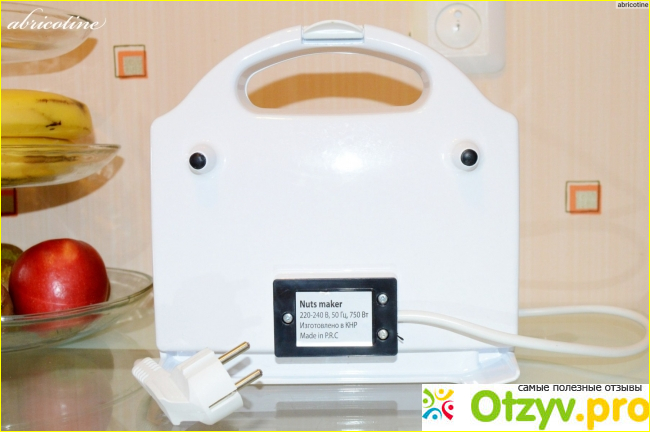 кстати, о мощности, чем выше мощность, тем качественней и быстрее пропекаются орешки. У нашего героя 750 Вт, вполне оптимальный вариант, особенно если считать что для домашнего пользования хорошо подойдут прибор от 700 до 1000 Вт.