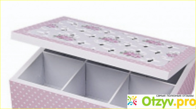 Основным материалом органайзера является древесина высокого качества, она достаточно долговечная, так как очень прочная. Благодаря хорошему внешнему покрытию, коробочка защищена от различных царапин и действия влаги, поэтому, уход за такой шкатулкой будет минимальным. Дизайн органайзера очень приятный, так как цветочные узоры, которые выполнены в светло-розовых тонах станут просто отличным дополнением в любой интерьер.