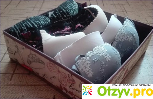 Короб для бюстгальтеров разделен не на квадратные ячейки, а на полоски. В каждую полосу закладывается один бюст. Всего может разместиться 5 штук.