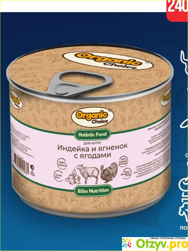 Достойный корм от хорошего производителя. Organic Сhoice Влажный корм для котят индейка ягненок с ягодами