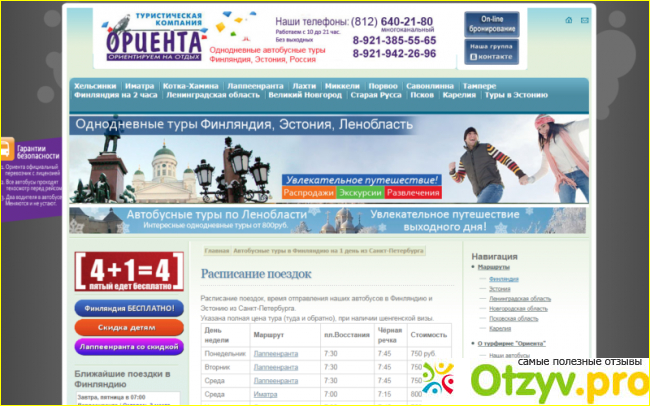 Также Ориента представляет нашему вниманию и такие выгодные предложения - на 1 денек съездить в Финляндию. Это недалеко от Петербурга, но тем не менее такие цены как предлагает Ориента - редкость для туристических фирм.