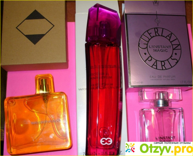 "Guerlain l'instant Magic" - 50 мл. Бывают и крупные флаконы, но такие лучше приобретать после тестирования, чтобы не разочароваться: например, женские духи "Mandarina Duck" представлен в этом магазине во флаконе емкостью 100 мл.