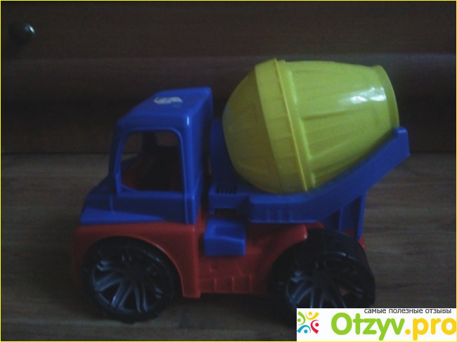 Цвета игрушки яркие и не тускнеют, ничего не облазит, отличные крепкие и большие колеса, машинка едет легко и без лишних усилий, ребенку очень нравится ее катать. Еще ему очень понравилось, что кузов можно поднимать и опускать, также здесь продуман фиксатор кузова, чтобы он не открылся, когда малыш этого не желает. Также саму бетономешалку можно крутить по кругу, перемешивая бетон, прям как в настоящей машине.