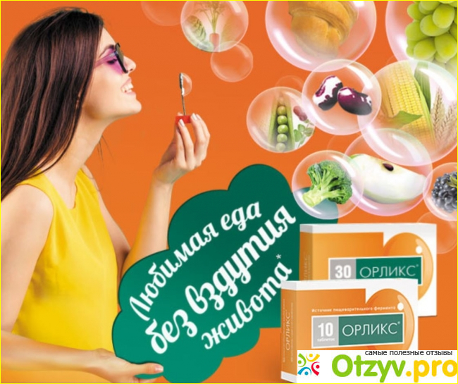 Орликс является активной добавкой к еде, в которой содержится фермент природного происхождения (альфа-галактозидаз). Именно этот компонент предотвращает образование газов в организме человека. Данный компонент позволяет расщеплять в организме сахара сложные (олисахариды) и переводит их в простые формы, которые достаточно легко могут усваиваться в организме. Также в организме обеспечивается активность ферментов, которой при повышенном образовании газа нет, предотвращается поступление этих сложных сахаров в наш кишечник, когда они нерасщепленны. Орликс это эффективный препарат, который поможет предотвратить такое неприятное состояние и ощущения вздутия живота, которое вызывается в следствии приема продуктов, способствующих метеоризму. Среди этих продуктов - овощи, различные бобовые, злаки цельные - именно они в своем составе имеют высокое содержание олисахаридов, а они у многих людей в организме усваиваются достаточно плохо. Когда они попадают в наш кишечник, происходит процесс брожения с бактериями и начинает высвобождаться избыточный газ, это приводит к тому, что живот начинает вздуваться, слышно урчание и болевые ощущения.