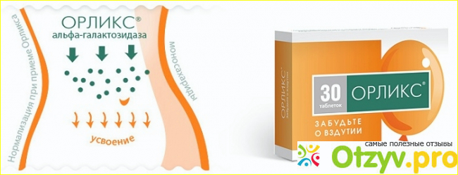 овощей, тогда прям без него уже не могу. Разница в ощущениях значительная, с орликсом нет дискомфорта, когда поужинаешь салатом, а на утро джинсы не застегиваются:)) Метеоризм не образовывается из-за фермента, который способствует расщеплению и перевариванию определенных продуктов. Стоимость Орликс приемлемая, хватает мне надолго, но зависит от диеты сильно, иногда упаковки на 2 недели хватает всего, а иногда на 2 месяца)) Препарат нужно принимать обязательно с едой, причем в начале с первой ложкой, чтобы фермент сразу был в организме и помогал с самого начала.