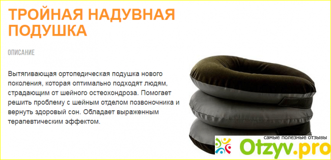 Сутоь проста, надеваешь подушку на шею, это скорее не подушка, а кольцо, и смысл в том, что она растягивает и выравнивает позвонки, ну если я правильно поняла. А главное, что мне начало помогать с первого раза. И еще инструкция такая серьезная, что надо курсом делать, ну прям как массаж!