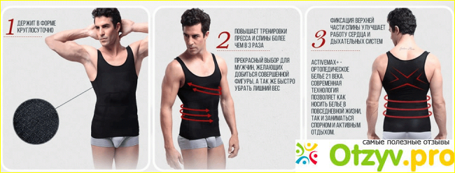 Этот момент я случайно заметила когда муж расслабившись сидел в кресле, честно говоря, удивилась так как раньше не замечала. Супруг сказал, что втягивает живот, когда ходит, а тут размяк (мы после баньки били) и так и сидел. Порывшись на сайтах ортопедического белья, так как цель была все-таки поясница супруга, а не пивной живот, нашла прекрасные отзывы об ортопедическом белье ACTIVEMAX. Мужское белье поддерживает осанку с помощью некого каркаса, который находится внутри самого белья или точнее сказать – мужской майки. Как-то хитро сконструировано, что стан плотно, со всех сторон поддерживается специальными вставками, которые укрепляют мышцы спины и пресса, в последнем случае речь идет даже о небольшом похудении. Лично у супруга животик сдулся после носки бельишка. Не совсем конечно, но визуально отчетливо заметно. Главное муж перестал жаловаться на поясницу и так как был случай – поднял что-то тяжелое и я приготовилась к утешению охов и стонов, но супруг как будто и не заметил что нагрузка выросла. Я спросила потом разве не больно спину, он сказал что даже не понял, вот так – белье и правда действует и мышцы укрепляет. Всем рекомендую у кого проблемы спины – при остеохондрозе и грыжах очень помогает, тело удерживается в вертикальном положении без колебаний.