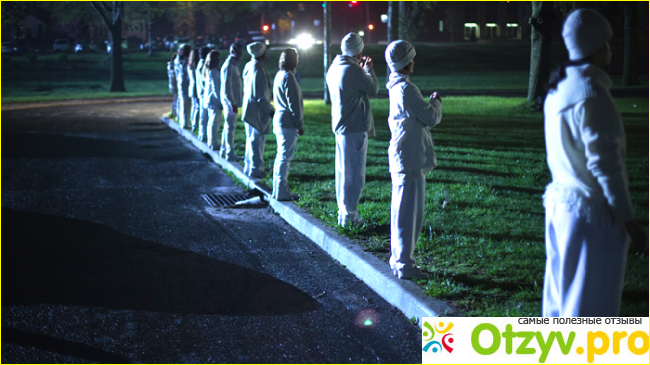 Секта, которая образуется лишь добавляет страсти - ее приверженцы ходят в одинаковых белых одеяниях, ничего не делают, лишь изредка покуривают травку - это основное их занятие. Разговаривают они при помощи надписей на бумаги - устраивают пикеты, которые пугают других жителей города, однако шума не приносят.