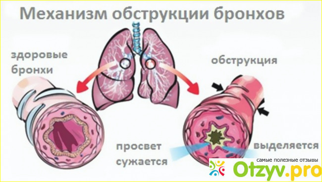 Обструктивный бронхит, является острой формой воспалительного заболевания, с поражением слизистой оболочки бронхов, происходит сужение бронхиального просвета и при этом происходит выделение большого количества слизи, которая затем загустевает и остается в бронхах, ее необходимо вывести из организма.