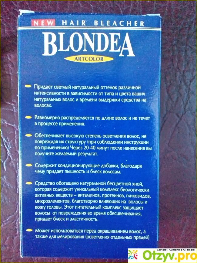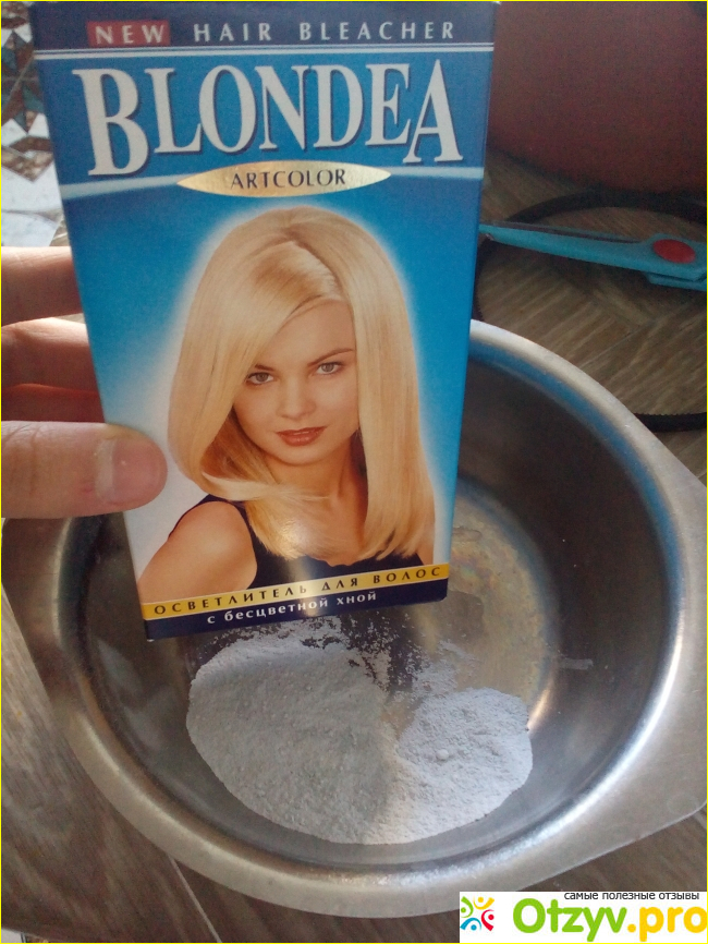 При нанесении на кожу осветлителя Блондеа может чувствоваться жжение. Бывала окрашивала прядь волос. Неделю проходила с золотой прядью, даже понравилось. Но цвет сменился на тусклый и выглядел уже не привлекательно. В упаковке инструкция также и пара прозрачных целовановых перчаток.